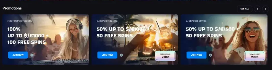 Luckyvibe bonus structures aim to lure with volume, but wagering terms demand scrutiny. The welcome package totals AU$5,000 + 300 luckyvibe free spins over four deposits, a hefty lure for new luckyvibe signup. First: 100% up to AU$1,000 + 100 FS (luckyvibe promo code CHOICE1). Subsequent tiers offer 50-75% matches with additional spins. High rollers snag 125% variants.